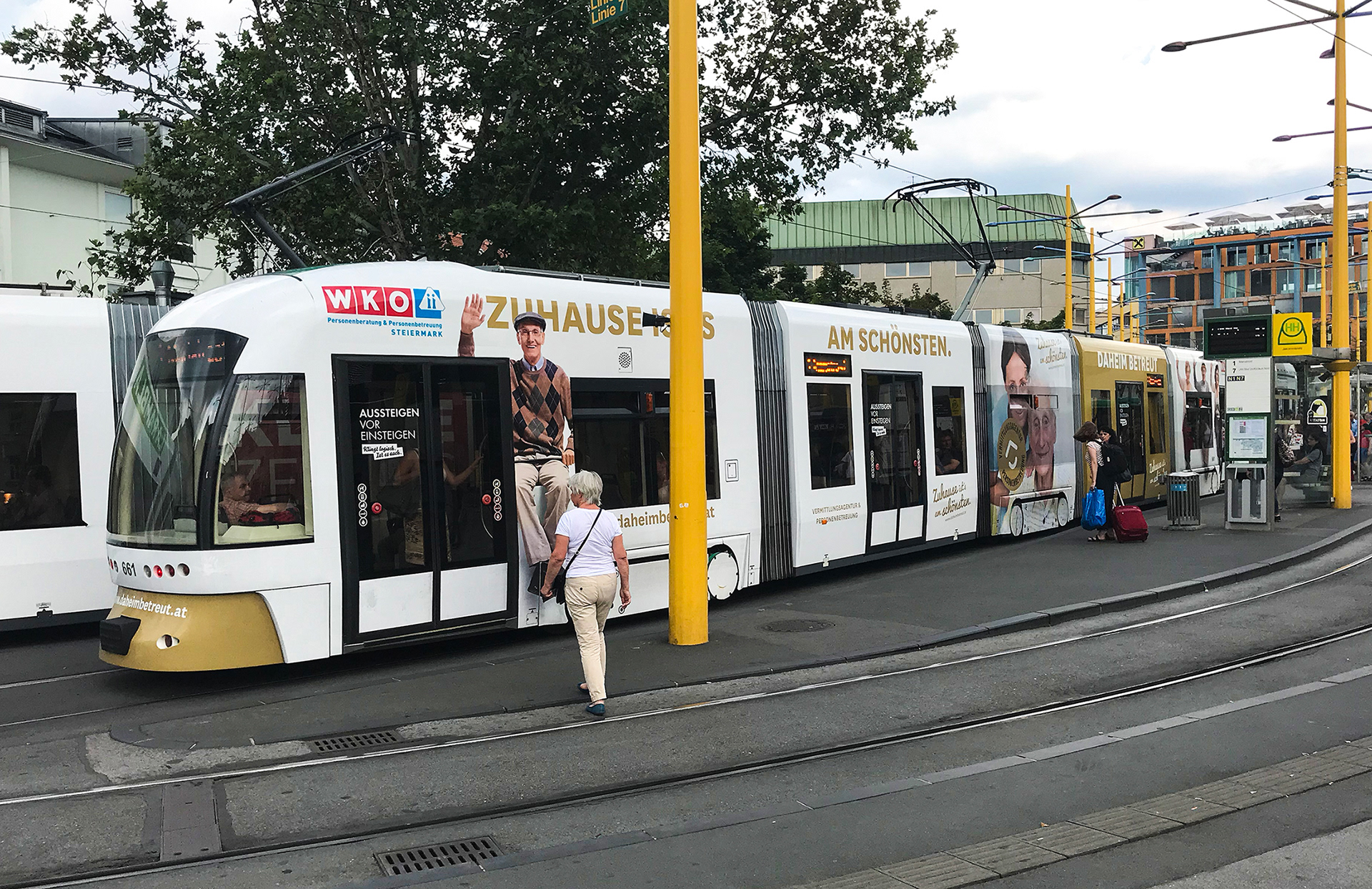 Eine goldener Cityrunner der Fachgruppe Personenberatung und Personenbetreuung veredelt aktuell das Erscheinungsbild der Grazer Innenstadt.