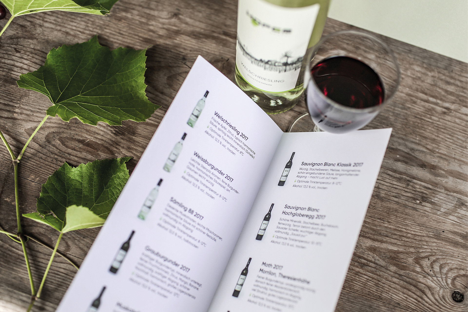 Inmitten der Sausaler Weinberge liegt das Weingut Hofer, direkt am Theresienhügel mit Blick auf den Klapotetz, das Symbol der südsteirischen Weinreben. Eine von uns umgesetzte Illustration fängt dieses idyllische Ambiente ein und kombiniert sich auf den Weinetiketten und Weinkarten mit dem bereits vorhandenen Logo des Betriebes. Der Werdegang der Spitzenweine von der Pflege der Weinstöcke bis zur Flaschenreifung wird zusätzlich fotografisch dokumentiert.